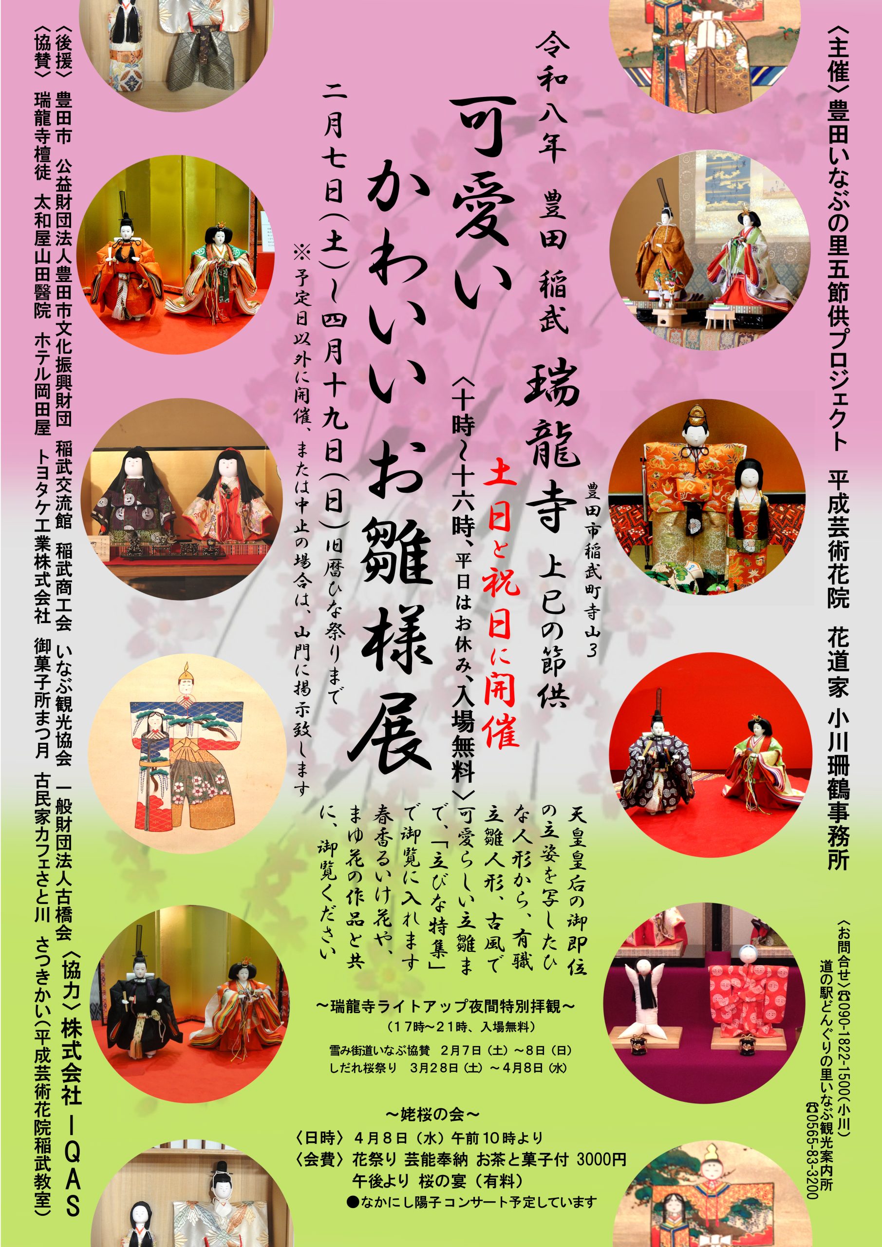 2026.02.05 花道家小川珊鶴先生によるイベントのご案内 花道家小川珊鶴先生によるイベントのお知らせです。 詳しくは下記画像をご覧ください。 皆様のご来場、心よりお待ちしております。 関連情報 2025.12.15 【終了】花道家小川珊鶴先生によるイベントのご案内 MORE 2023.02.20 いなぶ旧暦のひな祭り2023 ひなキャラフォトラリーのお知らせ MORE 2025.02.21 いなぶ旧暦のひな祭りフォトラリー2025のご案内 MORE 2025.03.17 【終了】第2回 大安寺桜まつり 開催のご案内 MORE 一覧に戻る